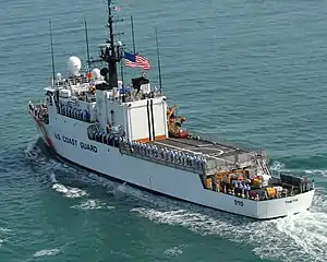 USCGC Thetis (WMEC-910) is a United States Coast Guard Famous-class medium endurance cutter. She is the 10th ship of the Famous Class cutters designed and built for the U.S. Coast Guard and the 3rd vessel to bear the name.[1] Laid down August 24, 1984 by Robert Derecktor Shipyard Incorporated of Middletown, Rhode Island. She was launched April 29, 1986 and named for the Greek goddess Thetis, the mother of Achilles. She was commissioned on June 30, 1989. Thetis conducts patrols throughout the Caribbean and the Gulf of Mexico.