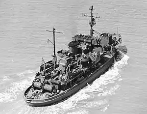 ![]() USS Trapper (ACM 9) near Charleston Navy Yard, SC after conversion | |