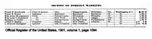 - "Official Register of the United States Government". Official Register of the United States Government (Various Issues). Washington: USGPO (1883, 1885, 1889, 1891, 1893, 1899, 1901, 1903, 1905, 1907, 1925–1959).