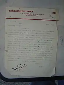 Moffat went out as a "statistical agent" of USDA's Division of Statistics but with the status of Deputy Consul General on the roster of the Department of State at London.[4] Subsequent USDA officials assigned overseas, however, did not enjoy diplomatic or consular status. This impeded their work, which at that point consisted mainly of collecting, analyzing, and transmitting to Washington time-sensitive market information on agricultural commodities.[5]