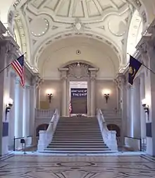 On January 15, 1947, Holloway became the 35th superintendent of the United States Naval Academy, succeeding Vice Admiral Aubrey W. Fitch.[45] At 48, Holloway was the youngest superintendent in fifty years, having been handpicked by Secretary of the Navy Forrestal to implement the academic changes suggested by the Holloway Board, which had recommended that the Naval Academy curriculum move away from rote recitation and continuous crams "to give a stronger emphasis to basic and general education, rendering more fundamental and less detailed instruction in strictly naval material and techniques."[46]