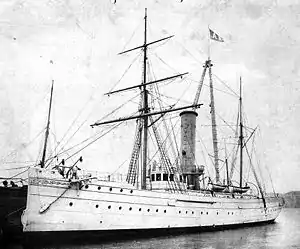 Manning served during the Spanish–American War with the U.S. Navy during the period 24 March 1898 to 17 August 1898, while based out of Norfolk, Virginia, as a coastal patrol vessel. This period included a four-month war deployment, from May 1898 through August 1898, on blockade and escort duty off Cuba.[6][13] On 12 May 1898, she joined the armed yacht USS Wasp and the unarmored cruiser USS Dolphin first in landing, then in providing naval gunfire support for the evacuation of a force of U.S. Army soldiers at Cabañas, Cuba.[1][2]