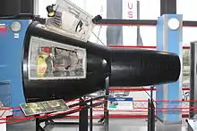 Some simulators on exhibit were used for astronaut training. A Project Mercury simulator shows the cramped conditions endured by the first Americans in space. A Gemini simulator shows visitors the accommodations when two people flew together to space for the first U.S. missions involving extra-vehicular activities and space rendezvous.[9]