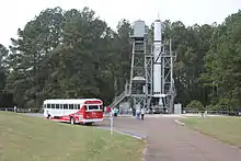 The Space & Rocket Center offers bus tours of Marshall Space Flight Center. The tour offers views of all four National Historic Landmarks at the center including a stop at the landmark Redstone Test Stand, where Alan Shepard's Redstone Rocket was tested prior to launch.[19] Another scheduled stop is the Payload Operations and Integration Center, which serves as mission control for a number of experiments. Bus tours originally started July 4, 1972,[20] but were suspended following the September 11 attacks in 2001. Tours resumed July 20, 2012, the 43rd anniversary of the Apollo 11 Moon landing, limited to United States citizens because of security protocol at the Army installation, Redstone Arsenal, which contains Marshall Space Flight Center.[6][21]