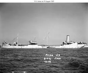 In September 1943, the WSA obtained full title to Acme when they traded six obsolete tankers for three new tankers.[2]