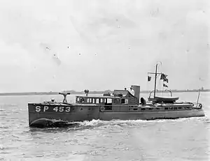 Contemporary Navy data shows the vessel had a 1,000 gallon fuel capacity for a cruising range of 400 nautical miles at a cruising speed of 25 knots (29 mph; 46 km/h) powered by two Dusenberg six cylinder engines driving two propellers.[5]