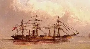The USS Ammonoosuc (later renamed USS Iowa) was a steam frigate laid down by the Boston Navy Yard during the American Civil War and was launched, apparently without ceremony, on 21 July 1864. She was intended to be used against the British should England decide to take the side of the Confederate States of America and attack the Northern part of the United States. However, as the war progressed, England's support of the Confederacy diminished, and the fast and powerful Ammonoosuc was never placed into service.