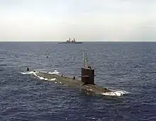 ![]() USS Batfish (SSN-681) at the end of March 1995 in the western Atlantic Ocean on her way to a six-month Mediterranean Sea deployment as part of the USS Theodore Roosevelt (CVN-71) carrier battle group. | |