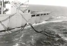 On 15 August 1991 four airmen from Helicopter Combat Support Squadron 11 (HC-11 "Gunbearers") were missing and presumed dead after their helicopter crashed while resupplying ships in the Pacific Ocean 100 miles (160 km) east Wake Island. Search efforts were abandoned about 24 hours later for the Sea Knight, which had been operating from Camden. Two ships were close by when the aircraft dropped into the water. Two helicopters were immediately launched for an air search, and the ships in the area launched whaleboats to assist in the search. Camden was deployed to resupply the aircraft carrier USS Nimitz and support ships, which were returning to the U.S. from duty in the Persian Gulf after taking part in Operation Desert Storm.[1] In 1992 CURV-III recovered the CH-47 Sea Knight helicopter off of Wake Island in 1992 from a depth of 17,251 feet, the world’s record for deepest salvage at the time.