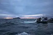 On 2 June 2007, Carter Hall engaged pirates after they boarded the Danish ship MV Danica White off the coast of Somalia. The LSD destroyed three small boats being towed behind the captured vessel, but was unable to pursue after the vessel entered Somalian waters.[1][2][3]