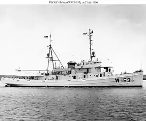 After the war, Chilula sailed for home. At Orange, Texas on 8 February 1947, she was decommissioned and entered the Atlantic Reserve Fleet. She was transferred to the United States Coast Guard on 9 July 1956 as USCGC Chilula (WAT-153). Her hull number was subsequently changed to WATF-153 later in 1956 and then WMEC-153 in 1966.[1] The Coast Guard decommissioned her on 19 June 1991 and returned her to the U.S. Navy who expended her as a target in 1997.