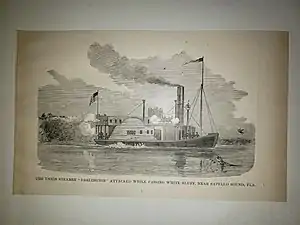 ![]() The union steamer "Darlington" attacked while passing White Bluff, near Sapello Sound, Fla. | |