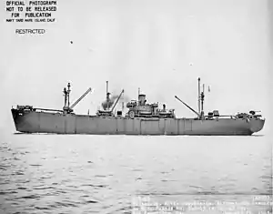 ![]() Broadside view of USS Deimos (AK-78) underway off San Francisco, 26 January 1943. | |