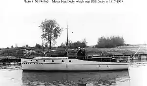Dicky as a civilian motorboat sometime between 1913 and 1917, prior to her U.S. Navy service..