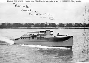 Edith II was built by the Great Lakes Boat Building Corporation at Milwaukee, Wisconsin, as a civilian motorboat of the same name in 1917. The United States Navy acquired her from her owner, Carnot M. Ward of Whippany, New Jersey, in May 1917 for World War I service as a patrol vessel and commissioned her as USS Edith II (SP-296). In 1918, her name was changed to USS SP-296.