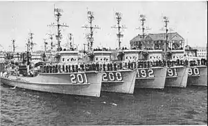 ![]() Shrike (AMS-201), Redwing (MSC-200), Hummingbird (MSC-192), Frigate Bird (MSC-191), and Falcon (MS-190) at Charleston, South Carolina | |