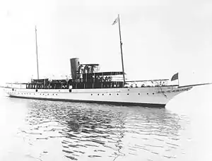 ![]() Galatea (American Steam Yacht, 1914) probably photographed upon completion by her builder, Pusey and Jones of Wilmington, Delaware. | |