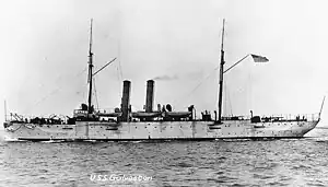 ![]() USS Galveston (CL-19) underway soon after completion, c. 1905. Note that her topmasts are partially lowered. | |