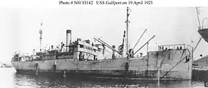 ![]() USS Gulfport (AK-5) at Norfolk Navy Yard, Portsmouth, VA., 19 April 1921. | |