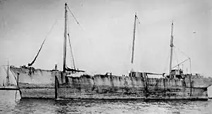J.B. Walker, a 2,136 gross ton seagoing barge, was built at Thomaston, Maine, in 1879 as a schooner. She sank, or struck a submerged obstruction and was beached, near Great Round Shoals, Nantucket, Massachusetts on 29 July 1916. Later raised, or refloated, and taken to Providence, Rhode Island.[1][2] After operating commercially for nearly four decades, she was taken over by the U.S. Navy in October 1917 and placed in commission as USS J.B. Walker (ID # 1272) in August 1918.