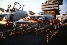 During the first six months of 2002, John F. Kennedy aircraft dropped 31,000 tons of ordnance on Taliban and al Qaeda targets in support of Operation Enduring Freedom.[2]