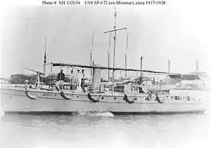![]() USS SP-672, ex-USS Miramar (SP-672), sometime in 1918. | |