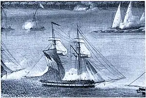 - On 5 April 1813, she captured the American schooner privateer Cossack.[11][lower-alpha 6] Cossack, of Salem, 48 tons (bm), was pierced for 10 guns but carried only one long 18-pounder and had a crew of 40 men. Cossack arrived at Saint John, New Brunswick on 8 April.[13] Cossac, a schooner, had been under the command of Jonathon Upton.[14]