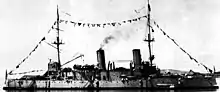 The Olympia briefly returned to Charleston on November 24, 1919. The following year, she was reclassified CA-15.[45] She then prepared for another tour of duty in the Adriatic, departing from New York on February 14, 1920. This was concluded on May 25, 1921, when the ship returned to Charleston. A month after her arrival she was made the flagship of the Atlantic Fleet's training unit. She then participated in joint Army-Navy experiments in July, during which the former German warships Ostfriesland and Frankfurt were sunk off the Virginia Capes.[33] She was again reclassified as CL-15 that year.[45]