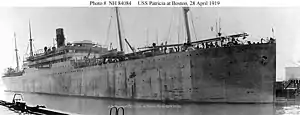 In 1919, HAPAG surrendered Patricia to the United States as part of Germany's World War I reparations to the Allies, and she was used to repatriate American Expeditionary Forces troops from Europe.
