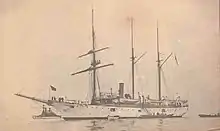 Princeton recommissioned on 12 May 1905 at Mare Island Navy Yard and was attached to the Pacific Squadron. She left on 4 June for duty as station ship at Panama City, where she remained until 24 October. On 2 December 1905, Princeton returned to Mare Island Navy Yard and began cruising off the Pacific coast from San Diego, California to Esquimalt, British Columbia. She escorted Rear Admiral C. J. Train's remains from Vancouver to Seattle (22–24 August), assisted the protected cruiser Boston (6–9 December) which was aground off Bellingham, Washington, and accompanied the armored cruiser California on her sea trials off Washington from 10–22 September. On 7 November 1906 she was in a minor collision when struck by James Nesmith, under tow by the tugs Wyadda and Dolphin, receiving minor damage at Port Townsend, Washington.[4] Princeton remained on station off the West coast until directed to rejoin the Pacific Squadron on 3 January 1907 at Magdalena Bay, Mexico.