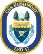 USS Rushmore (LSD-47) is a Whidbey Island-class dock landing ship of the United States Navy. She was the second navy ship to be named for the Mount Rushmore National Memorial in the Black Hills of South Dakota. She is the seventh ship in her class of dock landing ships and the fourth ship in that class to serve in the United States Pacific Fleet.