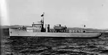 Once the vessel had arrived on the West Coast of Canada, Wallace used the vessel himself for a couple of weeks to maintain the illusion that Breezin Thru had not been purchased for military purposes.[7] She was rearmed with one 6-pounder gun at the bow. The ship was renamed Cougar and commissioned into the Royal Canadian Navy on 11 September 1940 with the pennant number Z 15. In Canadian service, the vessel had a complement of 5 officers and 35 crew. After commissioning, Cougar had a quiet career on the west coast, initially placed on antisubmarine patrol out of Esquimalt, British Columbia. In May 1942 she was transferred to Prince Rupert Force, based at Prince Rupert, British Columbia. She returned to Esquimalt in June 1944, where she served as an examination vessel. The vessel was paid off on 23 November 1945 and sold to American interests in 1946.[8]