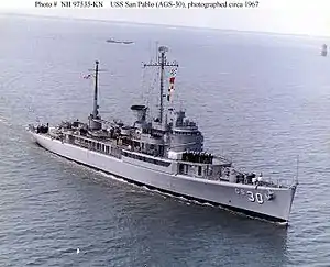 USS San Pablo (AVP-30) was a United States Navy Barnegat-class seaplane tender which was in commission as such from 1943 to 1947 and then served as a commissioned hydrographic survey ship, redesignated AGS-30, from 1948 to 1969. Thus far, she has been the only ship of the United States Navy to be named for San Pablo Bay, a shallow northern extension of San Francisco Bay in California.