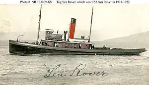 Sea Rover was built in 1902 as the commercial tugboat SS Sea Rover by Fulton Iron Works at San Francisco, California. She operated in United States West Coast waters in mercantile service until 11 December 1917, when her owners, the Shipowners & Merchants Tugboat Company of San Francisco, sold her to the United States Shipping Board, which immediately transferred her to the U.S. Navy for use during World War I. She was assigned the section patrol number 1014 and commissioned on 31 January 1918 as USS Sea Rover (SP-1014).
