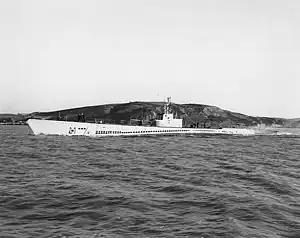 | Class and type | Salmon-class composite diesel-hydraulic and diesel-electric submarine[2] |