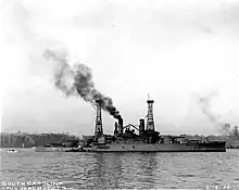 In the years immediately following the end of the Great War, the United States, Britain, and Japan all launched huge naval construction programs. All three countries decided that a new naval arms race would be ill-advised, and so convened the Washington Naval Conference to discuss arms limitations, which produced the Washington Naval Treaty, signed in February 1922.[4] Under the terms of Article II of the treaty, South Carolina and her sister Michigan were to be scrapped.[5] The ship was decommissioned on 15 December, but was not formally stricken from the Naval Vessel Register until 10 November 1923. She was sold for scrap on 24 April 1924 and subsequently dismantled.[2]