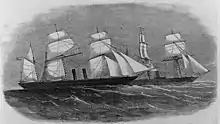 Recommissioned on 1 June 1871, Wachusett left New York City a week later, bound for the Mediterranean where she cruised until November 1873. On 7 August 1872, Landsman Alexander Bradley jumped overboard to rescue another sailor from drowning, for which he was later awarded the Medal of Honor.[2] Returning home, Wachusett served along the Atlantic and gulf coasts for a year before she was decommissioned at Boston on 29 December 1874. She remained laid up at Boston for five years and was recommissioned on 26 May 1879. She sailed for the Gulf of Mexico on 5 June and visited New Orleans, Louisiana, and Vicksburg, Mississippi, to enlist seamen before returning to Boston in August. On 2 October 1879, Wachusett left Boston for the South Atlantic Station where she cruised until May 1880. Following service in the Atlantic, Wachusett was transferred to the Pacific. In August 1881 Wachusett sailed to Sitka, Alaska and relieved USS Jamestown as the seat of government for the colonial Alaska District.[3] Wachusett, with Alfred Thayer Mahan in command, was stationed at Callao, Peru, protecting American interests during the final stages of the War of the Pacific.[4][5] The vessel remained on the Pacific Station, cruising extensively until September 1885 when she was decommissioned at the Mare Island Navy Yard, Vallejo, California. Wachusett was sold there to W. T. Garratt & Co. on 30 July 1887.