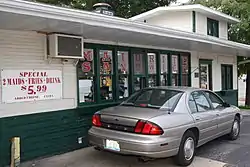 The road food trend was aided by entrepreneurs such as Howard Johnson who provided predictable, simple dishes—comfort food for the weary traveler. Many of the first roadside cafés were part of motor camp complexes, but others, such as Johnson's started explicitly as cafes and evolved further from there.[25] Large companies, such as Johnson's, or the Steak 'n Shake chain which began in Normal and was based on the pioneering idea of curbside service at the car, enjoyed success alongside what were mostly "mom-and pop" eateries dotting the Mother Road.[25][26]
