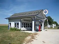 Filling stations were essential to the success of a trans-national road such as Route 66. Stations evolved their own unique design types and filling station architecture varied by period, at one time or another all major design types were represented along US 66 in Illinois. The existence of Route 66, and its alignment which ran parallel to much of the Chicago–St. Louis-running Chicago and Alton Railroad, itself made gasoline distribution simpler.[23] The earliest gas stations were curbside but these were quickly rendered obsolete because of their tendency to back up traffic when a customer used the roadside pumps. The curbside filling station was the first type of business to use the actual term "filling station". Other types of gas stations evolved such as the house or cottage type, the house and canopy, the house and bays, and the oblong box type.[23] Examples of extant filling stations along Route 66 in Illinois can be found in varying states of disrepair, and a few have been fully restored.[23]