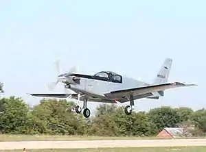 The US Aircraft A-67 Dragon is a single-engine, propeller-driven, ground-attack aircraft. It is designed for counter-insurgency (COIN), close air support (CAS), and intelligence, surveillance and reconnaissance (ISR) missions.[1] The A-67 is a low-cost aircraft built for low-intensity conflict situations, with a reported unit price of $4–5 million.[2] The sole aircraft built is in storage at the MAPS Air Museum.[3]