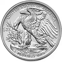 | Bi-metallic Eagle | 16.259 g | 26.92 mm (1.060 in) | Au 48%, Pt 48%, alloy 4% | gold, platinum | |
