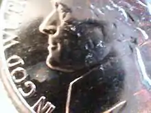 A die cap is a coin that has been stamped a number of times and has the appearance of a soda cap. Metal flows around the side of the coin and the portrait appears deep in the coin.