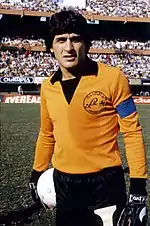 Ubaldo Matildo Fillol (locally [uˈβaldo maˈtildo fiˈʒol] or locally [uˈβaldo maˈtildo fiˈʎol]; born 21 July 1950), nicknamed el Pato (in English: "the Duck"), is an Argentine football coach and former goalkeeper. He took part in the 1974, 1978 (where he won the championship with his team and was voted Best Goalkeeper) and 1982 World Cups representing the Argentina national team. He also played in the South American qualifiers for the 1986 World Cup, but he was finally not chosen for the final team that played (and won) in Mexico. He is usually considered to be one of the greatest goalkeepers and usually regarded as the best Argentine goalkeeper ever.[1][2]