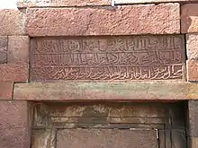 In the entrance porch of the temple are series of more than sixty votive records.[6] Not yet studied in a systematic fashion, these form a continuous sequence from the time of the Paramāras – Devapāla (1218–39) is mentioned – through the period of the Tughluqs and beyond. For example, one inscription mentions a festival (yātrā) of the god Udaleśvara in 1338, the same year as the Tughluq inscription recording the construction of the mosque in the temple precinct.[7]