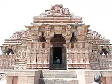 The most important temple at Udaipur is that dedicated to Śiva and known today as the Nīlakaṇṭheśvara. It was built in the second half of the eleventh century and is the only surviving royal temple of the Paramara kings. An inscription in the eastern porch records the building of the temple in Vikrama Saṃvat 1137 or 1080-81 CE.[3] Architecturally, the temple spire belongs to a class known as bhūmija, or 'earth born,' a mode of temple building that originated in the Mālwa region.[4]