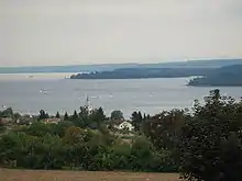 By the 1950s, Überlingen had established itself as a premier tourist destination on Lake Bodensee, particularly for those interested in the health cure.[32] Überlingen was Baden-Württemberg's first Kneippheilbad, a homeopathic cure using water therapy, diet, aroma therapy, and exercise, based on the principles of health developed by Sebastian Kneipp. The city's 2 km-long (1 mi) shore promenade ends at the new health resort (opened 2003), the Bodensee Therme (spa). In 2005, the city and its collaborators, Deisendorf and Lippertsreute, won the gold medal in the competition, Our City Blooms (Unsere Stadt blüht auf).[33]
