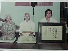 Upon Kanagusuku Ufuchiku's death, Shosei Kina (1882–1981)[7] became the second generation Soke or head master, even though he was the youngest and most junior of all the students. Kina first learned saijutsu from men in his village as a teen in Shimabuku,, excelling in Tsuken Shitahaku no Sai and Chatan Yara no Sai, but he began his training under Ufuchiku Kanagusuku in 1906, wherein he furthered his understandinog of use of the sai and jo/gusan and was exposed to the twenty-five weapons of Kanagsuku's kobujutsu.[8] Shosei Kina Okinawan students consisted of Shinyei Kyan, Shoshin Kina, Masanobu Kina, Kantoku Izumikawa, Seishin Higa, Kaishu Isa and Kiichi Nakamoto among others. Kina became a member of the Okinawa Kobudo Kyokai in 1961 and its continuation as the Okinawa Karate Kobudo Rengokai in 1968 from which he was awarded the 10th Dan Rank.[9] In October 1975, Kina Sensei founded the Ufuchiku-den Ryūkyū Kobujutsu Hozonkai and served as its first President with Kaishu Isa assigned as the Vice-President.