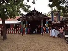 There was a small hut made with loose stones for the "Vel" at the top of the hill from very long time. British diaries confirm that this was a notable Hindu shrine even in the 1800s.[4] It is believed that, a Hindu sage named "Giri", from North India looked after this temple. A famous merchant from Jaffna "Markkandu Mudaliyar" lived in Batticaloa erected a small building for housing the Vel in 1885. "Muthiyanse Bandara Mahataya" from Panamai was appointed by him, as the "Vannakkar" (litt. Caretaker) of the temple along with the priest "Kaliyappan", from Kolavil village.[5]