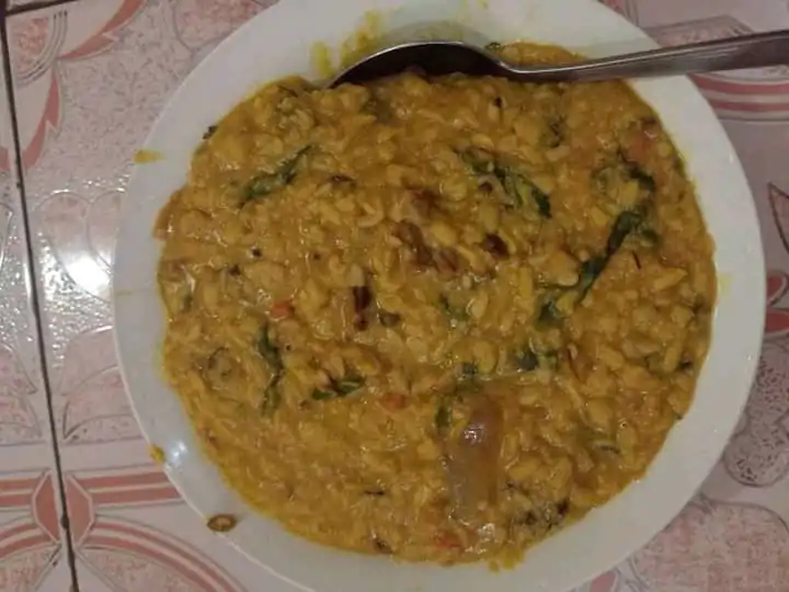 Ukwa, also known as breadfruit, is commonly cooked with potash, bitter leaf, dry fish, pepper, and spices. You can also cook and add White Puna yam and corn to give a unique taste. Its scientific name is Treculia africana, and it belongs to the family of Moraceae. The first step to cooking ukwa is to wash it thoroughly. Cook until the seed mash then add palm oil, bitter leaf, Potash, stock or dry fish and pepper.[2]