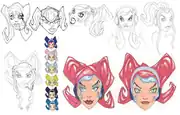 Ulala was conceived by Takashi Yuda, who also came up with her name.[1] She was originally conceived to be a male character,[2] and was not present in the original 1997 concept video for Space Channel 5.[3] Although the games were originally conceived to appeal to female gamers, the developers of Space Channel 5 also wanted Ulala to have a unique sexual appeal for male audiences.[4][5][6] The designers aimed for her sex appeal to be "subtle," and aimed to try and reflect how clothes would be in 500 years, explaining that Ulala's underwear showing at some times was not as big a deal in this future. Ulala's model has a low polygon count, which lead to her sex appeal being defined through her movement according to Mizuguchi.[7] When picking the colors of Ulala's outfit, the development team behind the original 1999 game used orange and blue, to represent the colors of the Dreamcast logo and corporate color of Sega Japan respectively.[8]